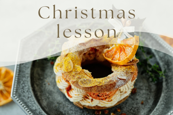 「温州みかんのパリブレスト」を12月18日(木)AM11:00~徳島県鳴門市のお菓子教室で開催します。日本の素材×フランス菓子を融合させた、リング状のシュー菓子です。