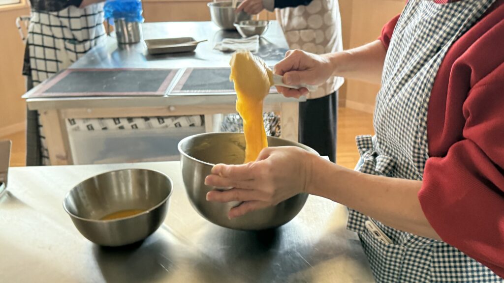 生地の固さの見極めを体感できるのは、対面ならでは。